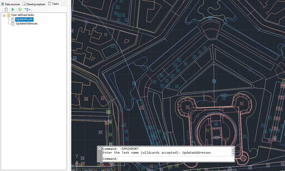 Mit Spatial Manager™ for BricsCAD-Aufgaben können Sie jeden Import-Prozess so oft wie gewünscht wiederholen, ohne die Parameter erneut eingeben zu müssen. Verwalten und Ausführen von Aufgaben in der Hauptpalette der App.
