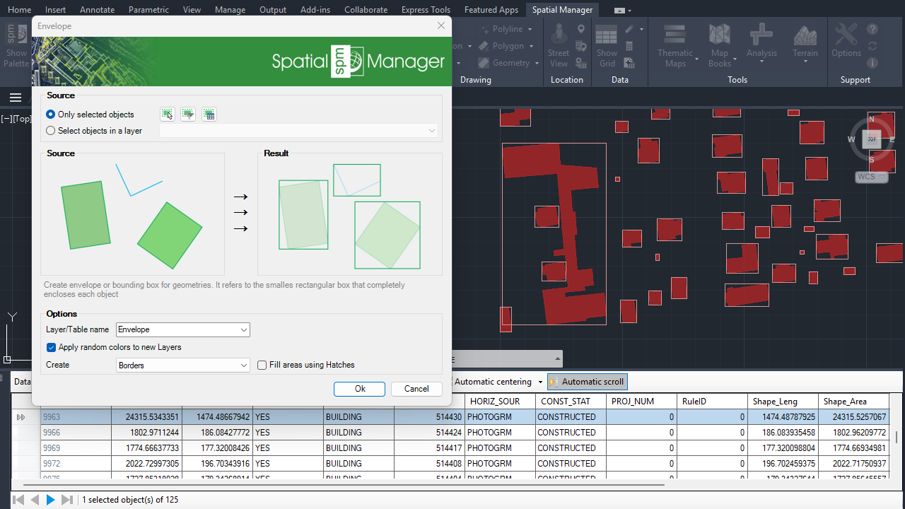 - Select the objects to create the envelopes manually, by query, table or layer.