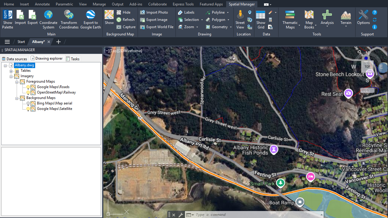 With Spatial Manager™, you can load multiple maps from different sources and compound an advanced view. Arrange their display priority, and control their visibility independently—making it easier than ever to compare, analyze, and present spatial data directly in your CAD environment.