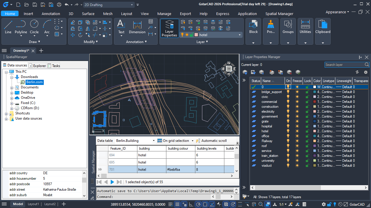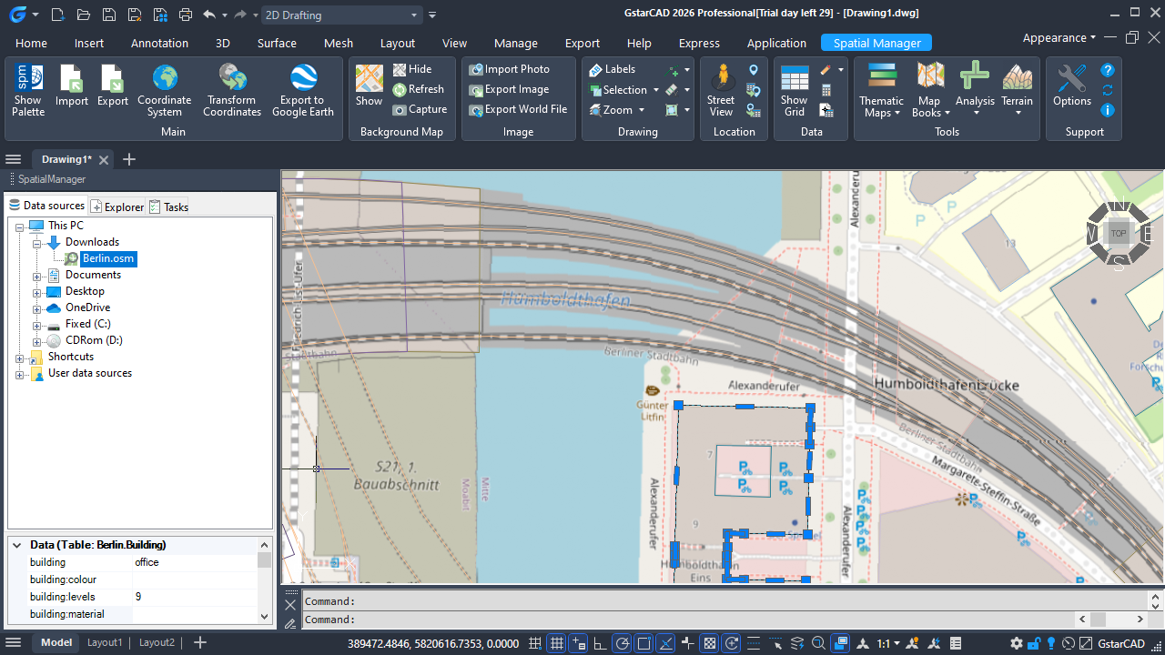 How to Import OpenStreetMap Data into GstarCAD using Spatial Manager for GstarCAD