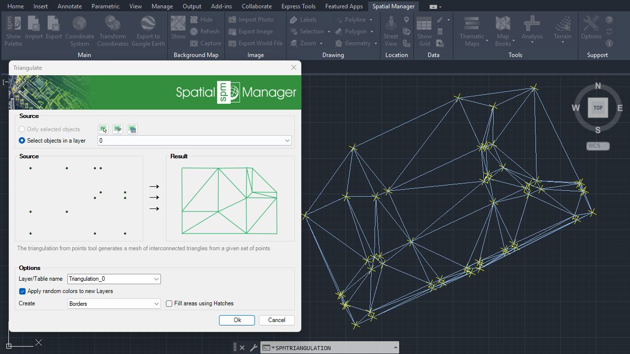 - Type SPMTRIANGULATION in the command line and press Enter or search for the tool in the ribbon or toolbar.